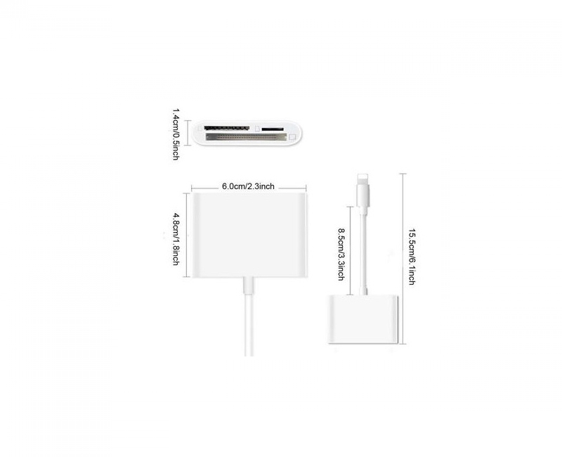 USB Lightning 3 trong 1: 1 x SD - 1 x Micro-SD và 1 khe cắm thẻ nhớ CF.