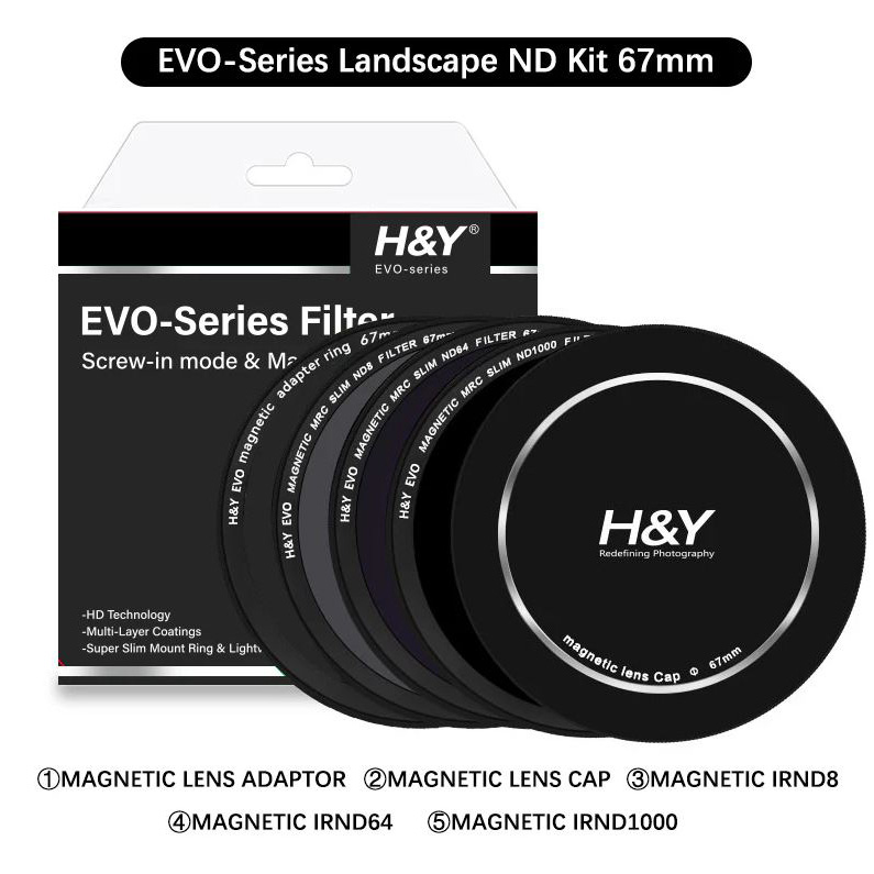 Bộ lọc ND từ tính H&Y HD EVO-Series dành cho nhiếp ảnh phong cảnh được thiết kế cho các nhiếp ảnh gia phong cảnh cần kiểm soát ánh sáng toàn diện để tạo ra những bức ảnh phơi sáng dài tuyệt đẹp. Bộ sản phẩm toàn diện này bao gồm các bộ lọc từ tính IRND8, IRND64 và IRND1000, cùng với bộ chuyển đổi đế và nắp ống kính, cung cấp các công cụ thiết yếu cho nhiếp ảnh phong cảnh xuất sắc.