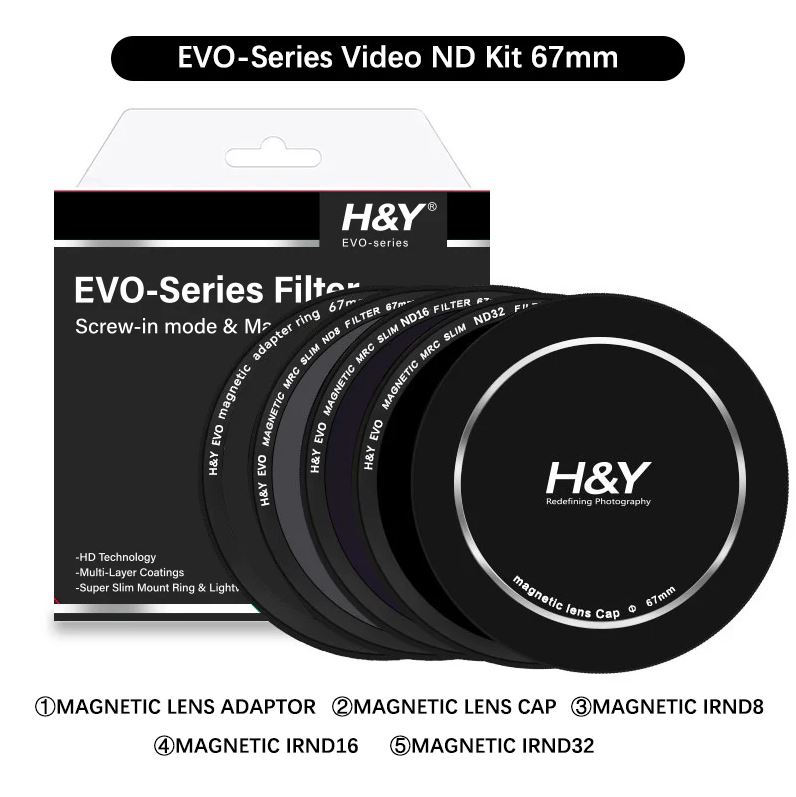 Bộ lọc ND từ tính H&Y HD EVO-Series dành cho quay phim được thiết kế cho các nhà quay phim cần kiểm soát ánh sáng chính xác để duy trì tốc độ khung hình và tốc độ màn trập ổn định. Bộ sản phẩm đa năng này bao gồm các bộ lọc từ tính IRND8, IRND16 và IRND32, cùng với bộ chuyển đổi đế và nắp ống kính, cung cấp giải pháp toàn diện cho nhiều điều kiện ánh sáng khác nhau.
