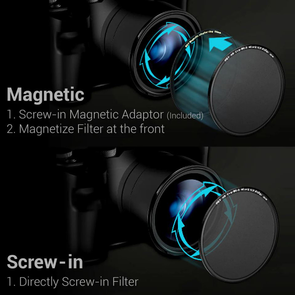 Bộ lọc ND dành cho quay phim lý tưởng cho việc quay video trong môi trường ánh sáng đa dạng, nơi việc duy trì độ phơi sáng nhất quán là rất quan trọng. Các bộ lọc IRND8, IRND16 và IRND32 cho phép kiểm soát ánh sáng hiệu quả, đảm bảo cảnh quay mượt mà, đậm chất điện ảnh bằng cách duy trì tốc độ màn trập và khẩu độ tối ưu, ngăn ngừa hiện tượng phơi sáng quá mức.