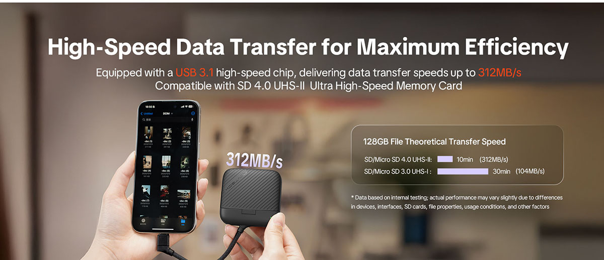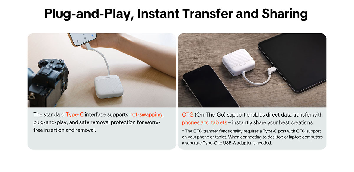 PGYTECH CreateMate High-speed Mini là hộp phụ kiện 2-in-1 đột phá dành cho nhà sáng tạo nội dung, kết hợp hoàn hảo giữa hộp bảo quản thẻ nhớ và đầu đọc thẻ tốc độ cao. Thiết bị sử dụng chip truyền dẫn hiệu năng cao USB 3.1, hỗ trợ tốc độ đọc lên tới 312MB/s, giúp bạn sao chép dữ liệu từ thẻ SD/MicroSD sang điện thoại, máy tính bảng (Type-C) hoặc laptop một cách nhanh chóng và mượt mà ở bất cứ đâu.