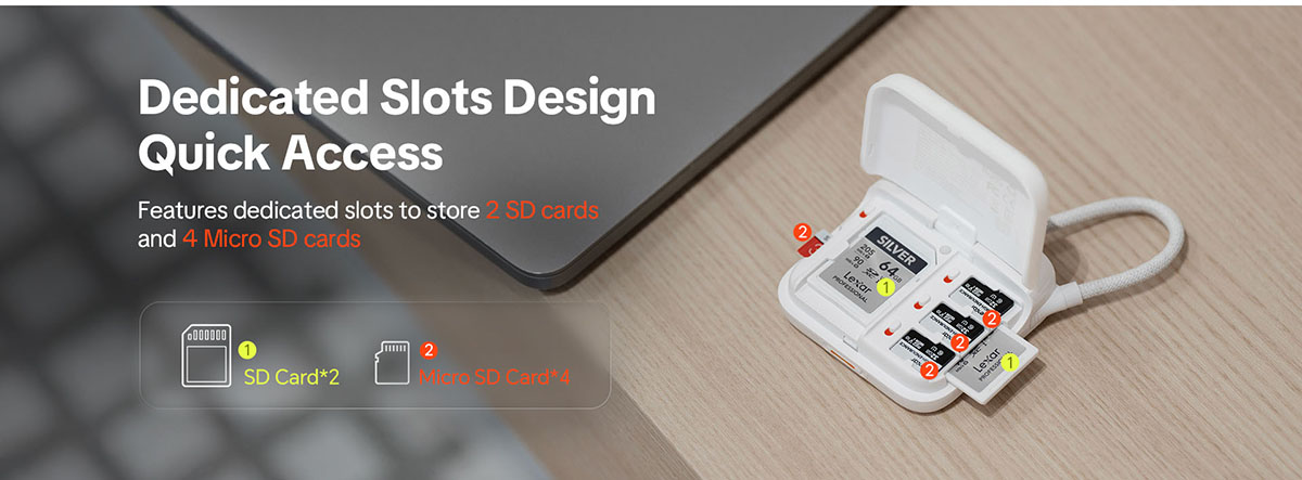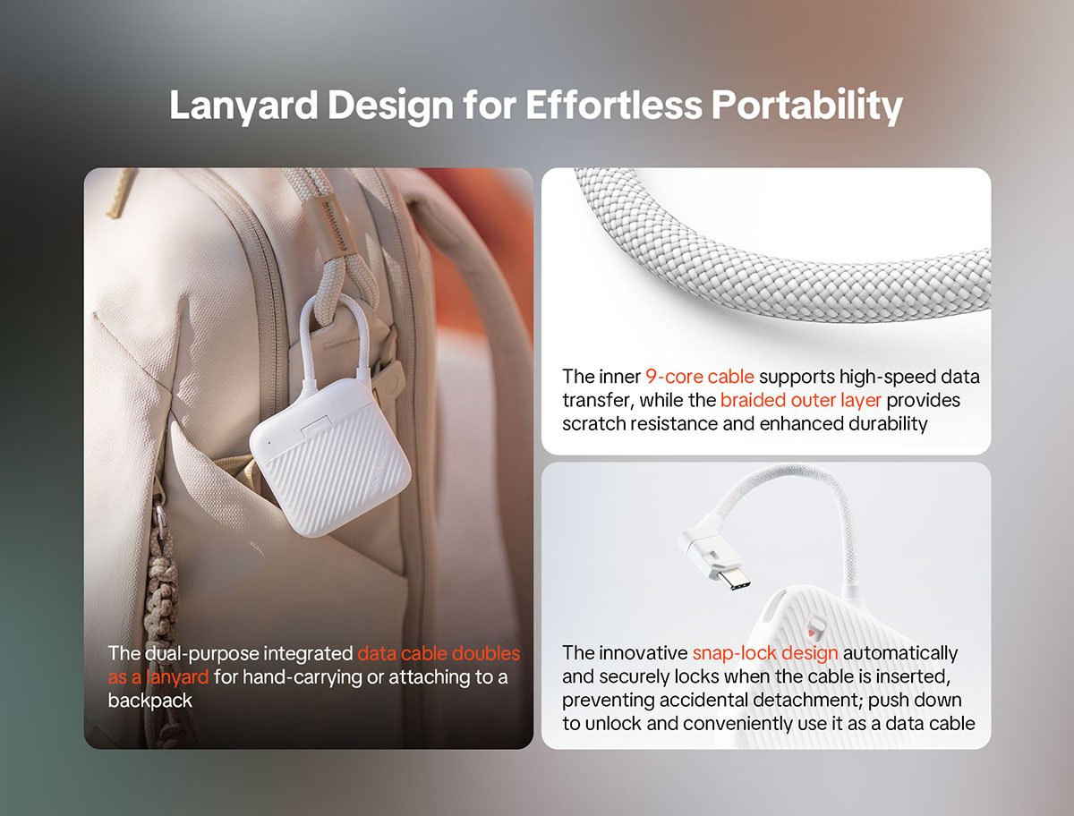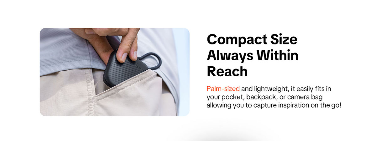 Bên cạnh hiệu năng mạnh mẽ, CreateMate Mini còn sở hữu thiết kế bền bỉ với lớp vỏ bọc cao su chống sốc và khả năng kháng nước, kháng bụi chuẩn IP54. Không gian bên trong được bố trí thông minh để chứa gọn 4 thẻ SD và 4 thẻ MicroSD (kèm que chọc SIM), đi kèm móc treo tiện lợi kiêm dây cáp kết nối, biến CreateMate Mini thành phụ kiện "bất ly thân" an toàn và gọn nhẹ cho mọi chuyến đi.