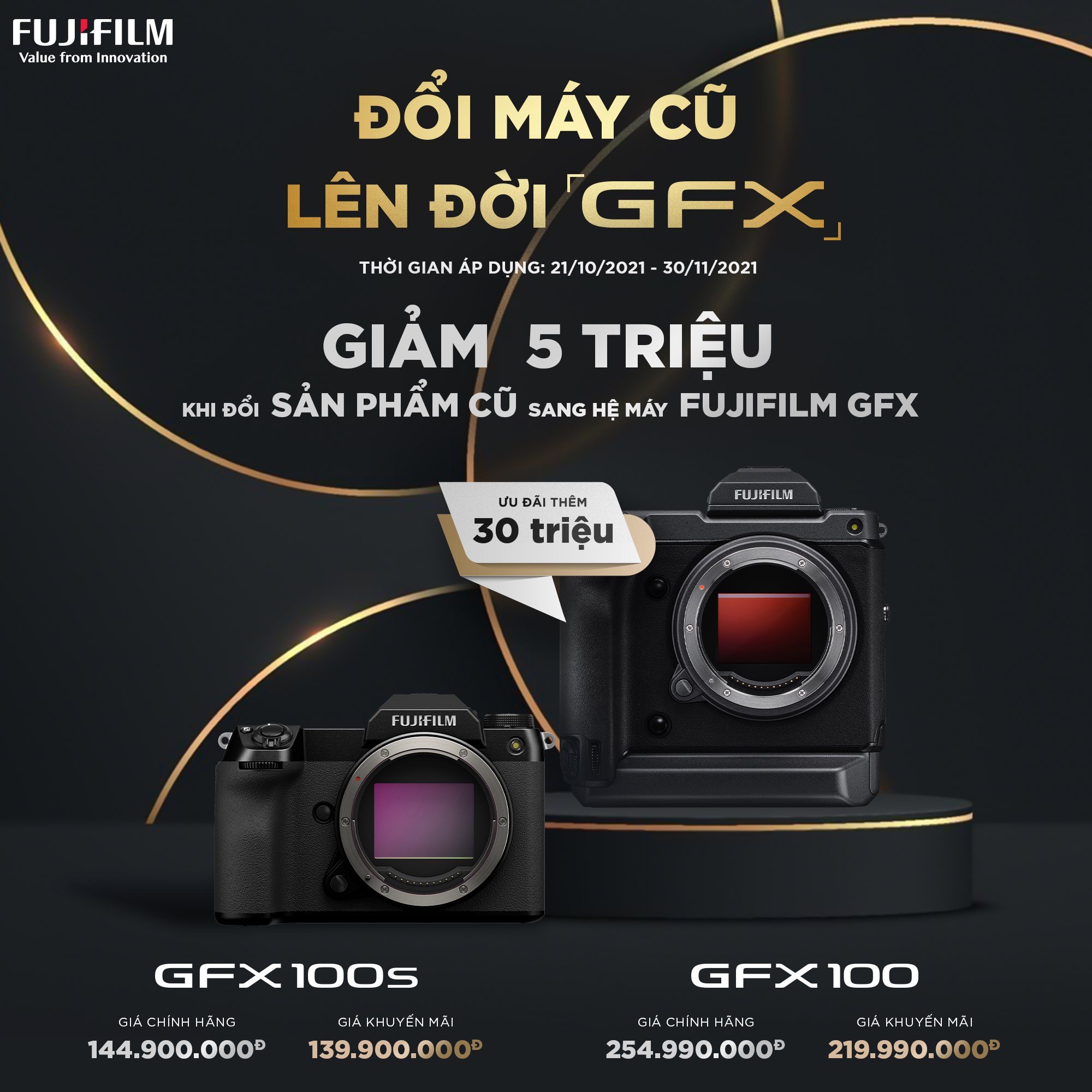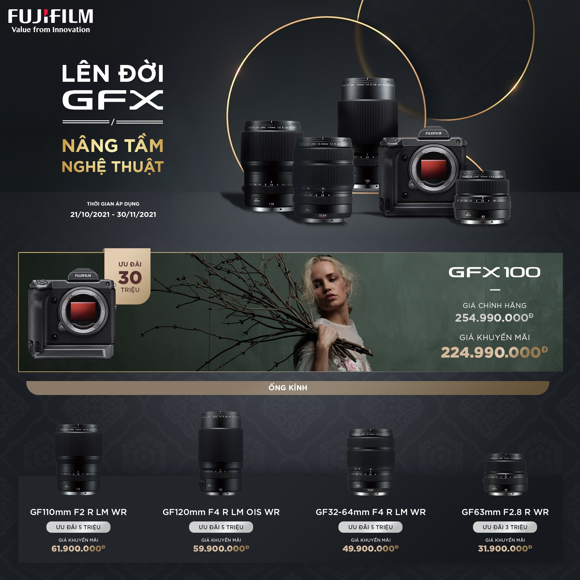 Tham gia ngay Chương trình "ĐỔI MÁY CŨ - LÊN ĐỜI GFX" để nhận ngay quà tặng 𝟓,𝟎𝟎𝟎,𝟎𝟎𝟎𝐕𝐍𝐃 cho mỗi sản phẩm cũ chuyển đổi. Áp dụng cho GFX100 và GFX100S.