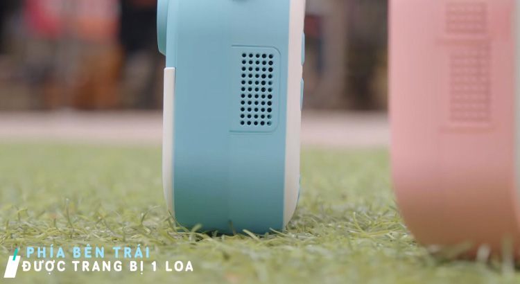 Bên trái của máy ảnh lấy nhanh myFirst Camera Insta 2 còn có 1 dải loa để hỗ trợ xem lại video mà các bé đã thu lại trọng máy.
