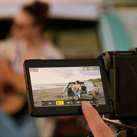 Máy trang bị màn hình cảm ứng 4 inch xoay lật đa góc, hỗ trợ dải màu DCI-P3, độ sáng 1000 cd/m² và độ phân giải 3.07 triệu điểm ảnh, cho phép theo dõi hình ảnh sắc nét ngay cả trong môi trường sáng mạnh. Người dùng có thể nạp sẵn đến 10 LUT để xem trước màu sắc ngay trên màn hình trong quá trình quay.