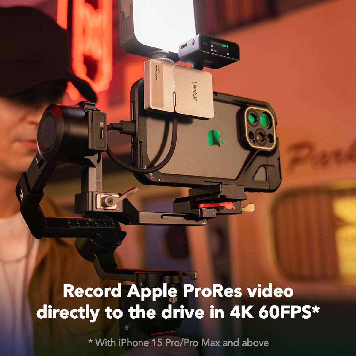 Một giải pháp sáng tạo được thiết kế riêng cho người dùng iPhone 15, Lexar Professional Go Portable SSD with Hub cho phép bạn dễ dàng ghi lại video Apple ProRes bằng iPhone 15 Pro/Max trở lên. Cho dù bạn muốn ghi lại những khoảnh khắc khó quên hay tạo video chất lượng chuyên nghiệp, Lexar Professional Go Portable SSD with Hub là thiết lập tối ưu cho cả người sáng tạo và quay phim.