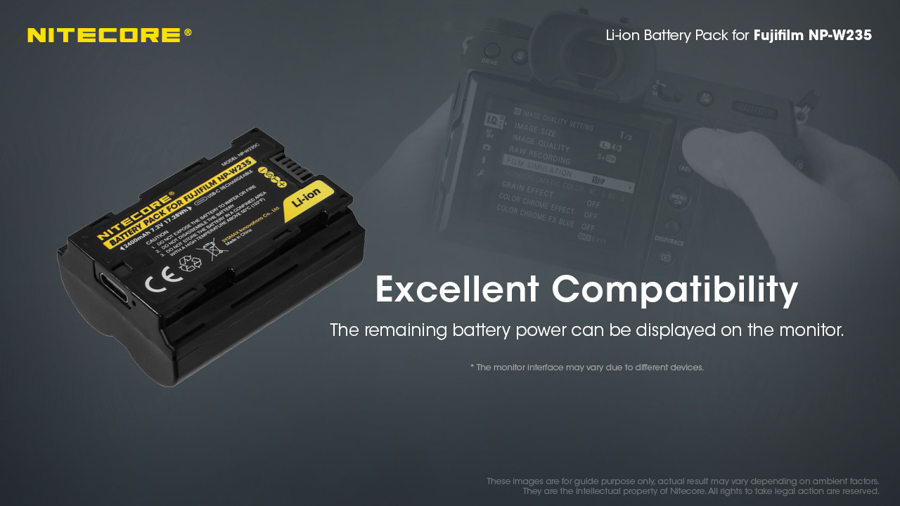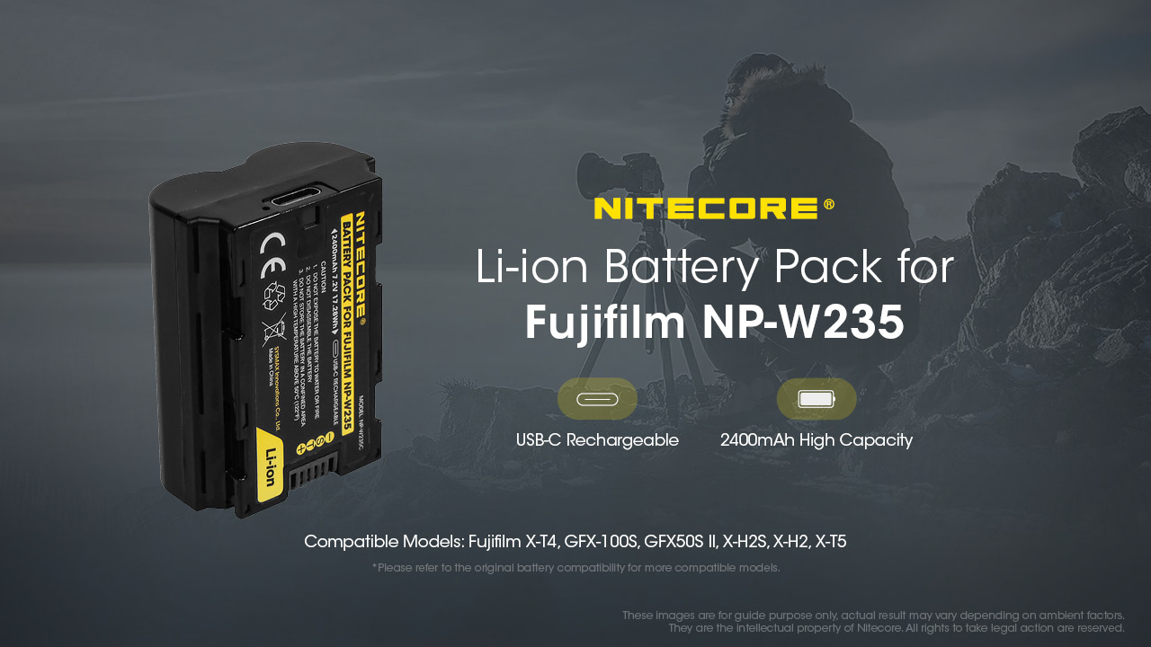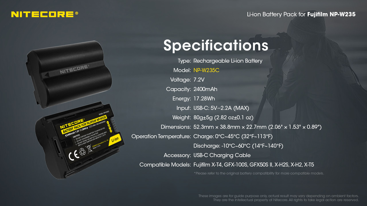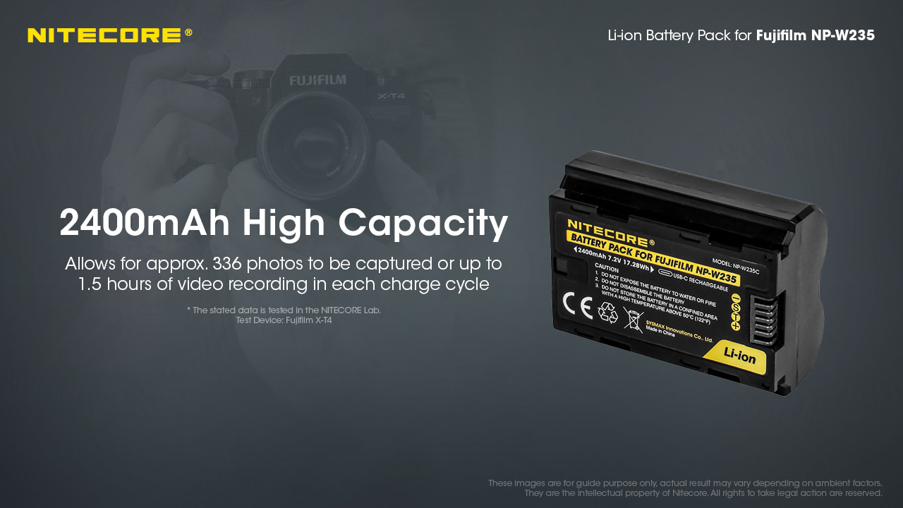 Pin Nitecore NP-W235C là nguồn năng lượng đáng tin cậy cho máy ảnh Fujifilm, với dung lượng 2400mAh. Tương thích với nhiều dòng máy Sony hàng đầu như Fujifilm X-T4, GFX-100S, GFX50SⅡ, X-H2S, X-H2, X-T5. Pin có thể sạc lại qua cổng USB-C, mang lại sự thuận tiện và linh hoạt cho người sử dụng chuyên nghiệp và nghiệp dư. Đừng bỏ lỡ khoảnh khắc quan trọng với hiệu suất ổn định và độ tin cậy của pin NP-W235C.