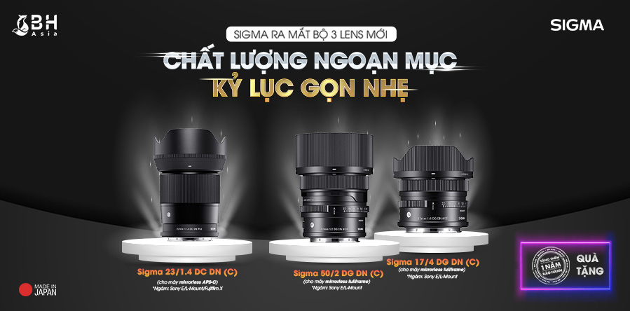 - SIGMA 23/1.4 DC DN: “Phiên bản APS-C” của 35/1.4 DG HSM (A) Dẫn đầu chất lượng hình ảnh chưa từng có trong lịch sử của của series lens DC DN, cải tiến hơn nữa dựa trên Sigma 56/1.4 DC DN với khẩu lớn, gọn nhẹ (chỉ nặng 330g), tiêu cự 23mm hữu dụng (tương đương 35mm trên fullframe) lý tưởng để chụp phong cảnh, đường phố,…