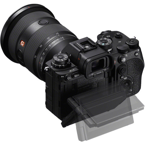 Màn hình trên máy ảnh a1 II có thể bố trí đa góc 4 trục theo cả chiều ngang và chiều dọc. Thiết kế màn hình rộng có thể nghiêng lên trên xấp xỉ 98 độ, nghiêng xuống xấp xỉ 40 độ về phía lưng máy ảnh và nghiêng sang bên đủ 180 độ. Bên cạnh đó, màn hình của máy ảnh Mirrorless loại lớn loại 3,2 inch, 2,1 triệu điểm, có gam màu rộng và thiết kế thông minh xem rõ nét ngoài trời.