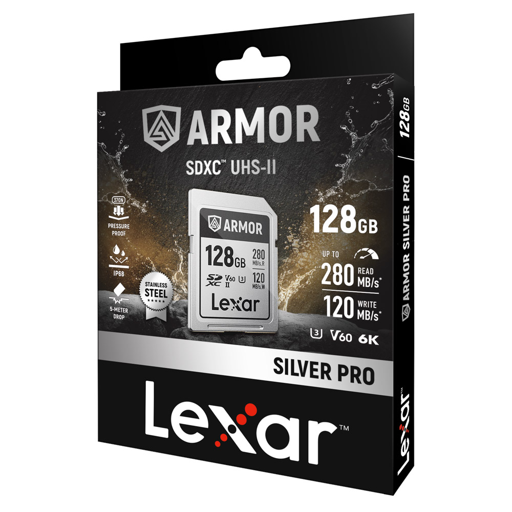Lexar ARMOR SILVER PRO SDXC UHS-II là chiếc thẻ nhớ chuyên dụng được thiết kế để đồng hành cùng bạn trong mọi điều kiện khắc nghiệt – từ băng tuyết đến sa mạc, từ studio đến những vùng hoang dã. Được chế tạo bằng thép không gỉ cao cấp và đạt chuẩn IP68, thẻ có khả năng chống nước, chống bụi và chống va đập ở độ cao lên đến 5 mét.